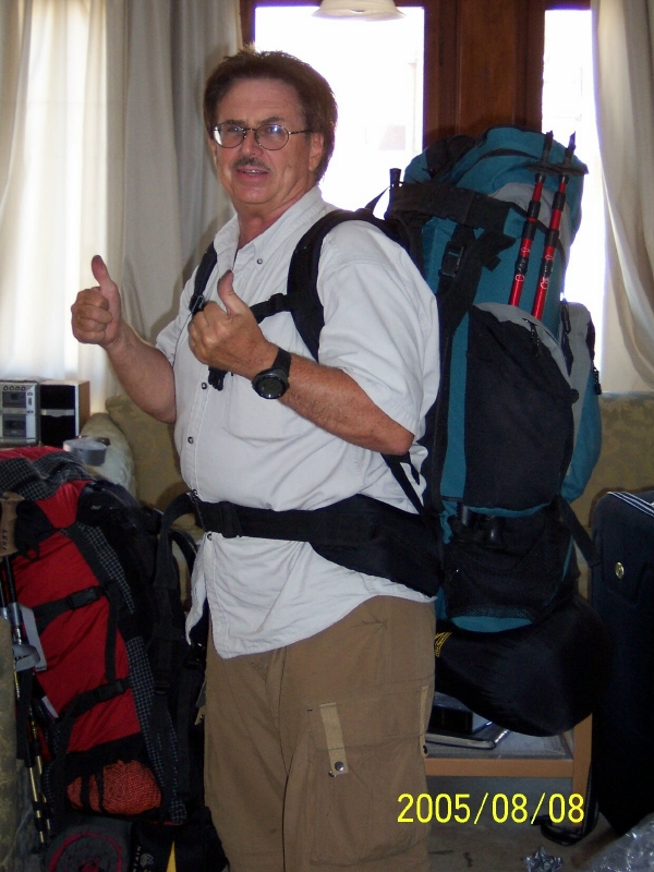 Pre climb picture in Istanbul. Dow P with some of our gear. By John McIntosh.