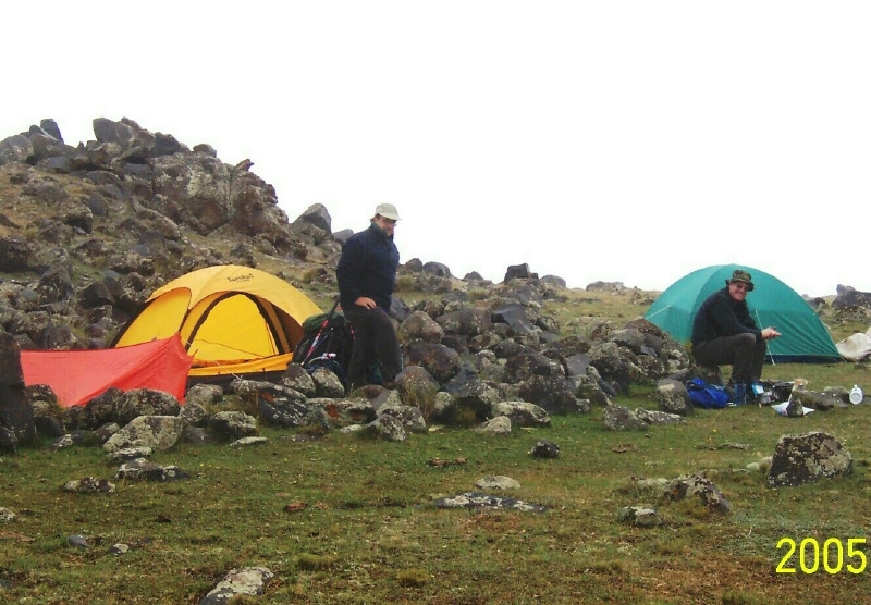 Camp 1--SW Ararat, 9,700 feet, Halis, Matthew Kneisler and Mehmet. Photo by John McIntosh.