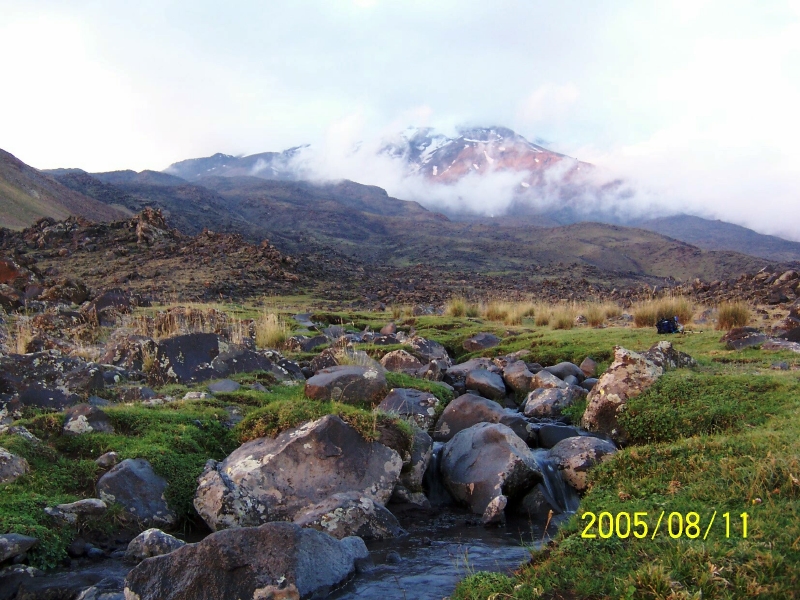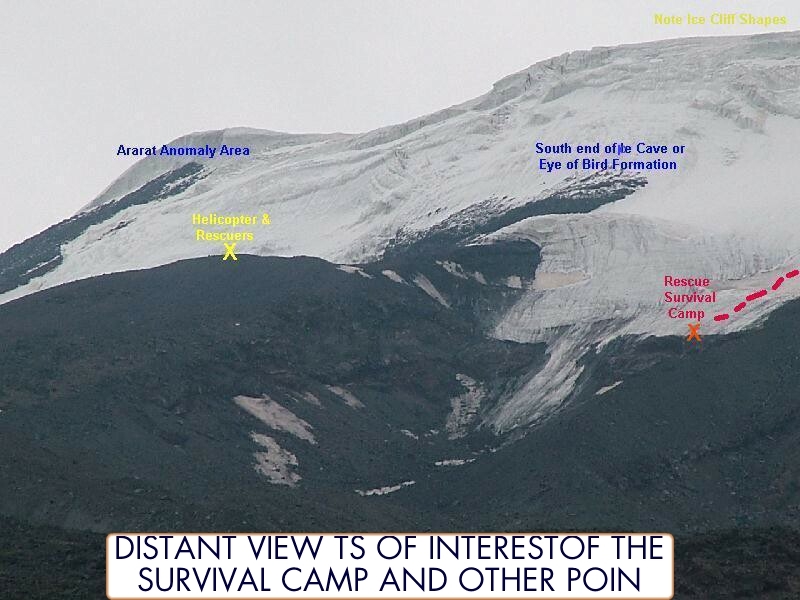 Turkish pess photo showing our survival camp at the bottom of the glacier and near the cliff.
