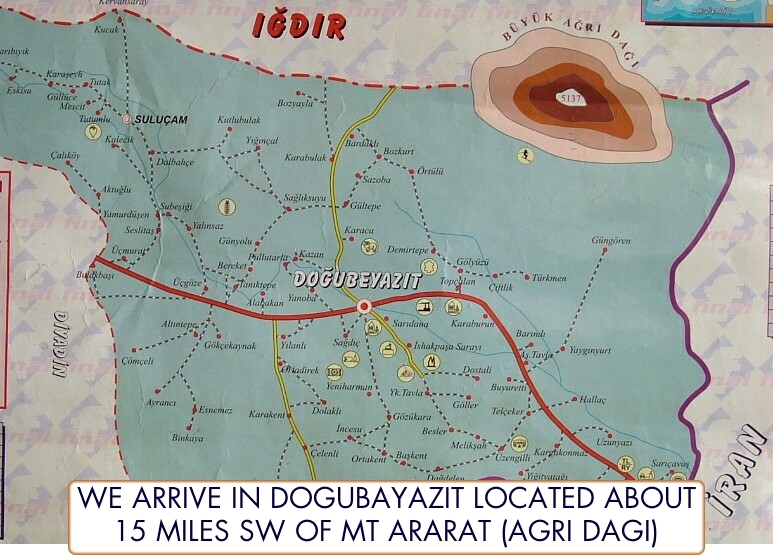 Map showing Dogubayazit and Mt Ararat in Eastern Turkey. By John McIntosh.