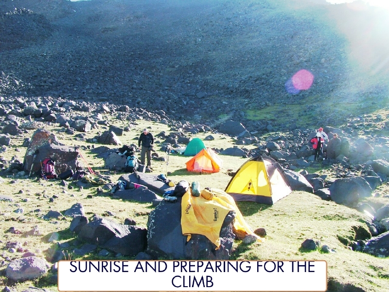 Arrival at Camp 2, 11,500 feet-S-SW face of Ararat. By John McIntosh.