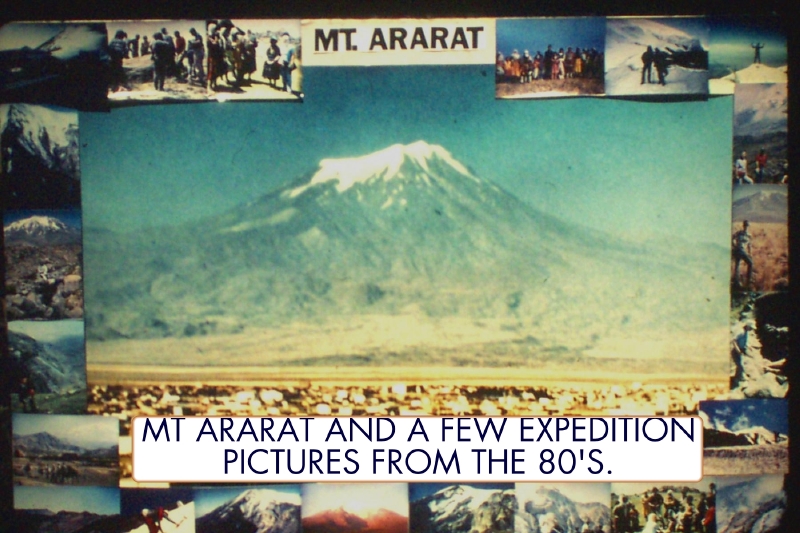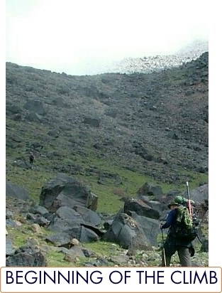 Looking at the SW face of Ararat. The slope shown is where our Camp 2 would be. It is this slope area where it is believed the Chinese explored their first cave near the top of this slope. A reported wood find has also been claimed on this slope by another research group. There is an interesting Ark like appearing object near the center of the picture--2/3 the way up the mountain. Later analysis of other pictures of this area led us to the conclusion that there was only rock there. By Matthew Kneisler.