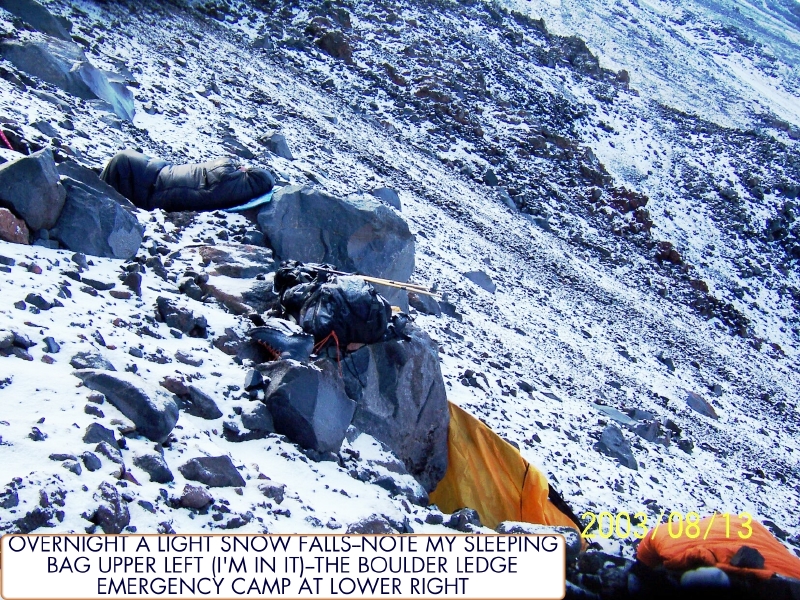 Our emergency Camp 3 at 13,400 feet at dbout 3/4th the way up NM Ridge. By Matthew Kneisler.