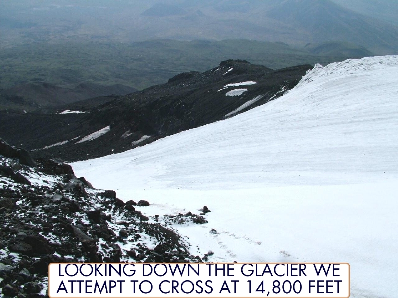 Looking down the glacier at 14,800 feet. By John McIntosh.