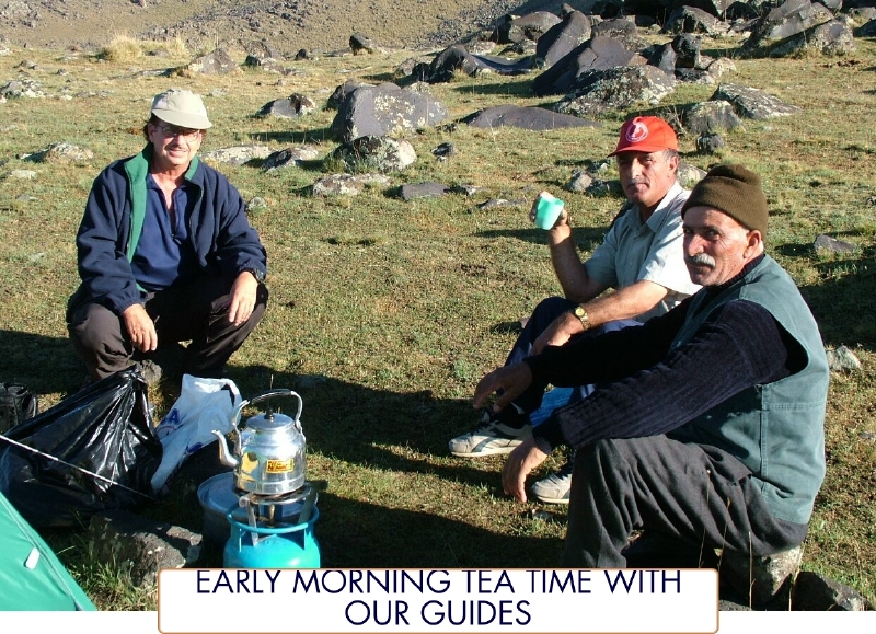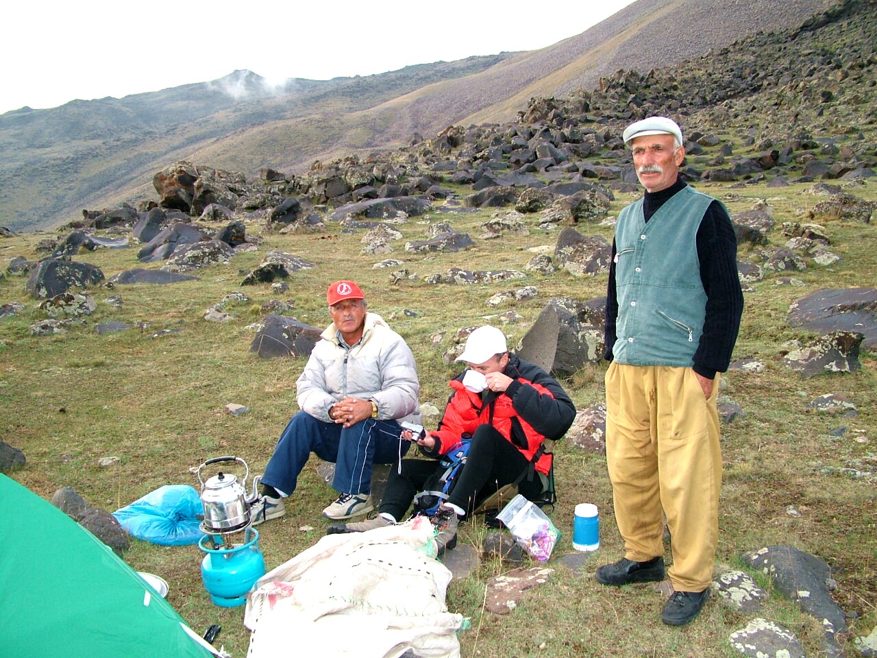 Camp 1--SW Ararat, 9,700 feet, Halis, Matthew Kneisler and Mehmet. Photo by John McIntosh.