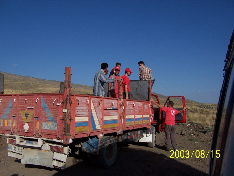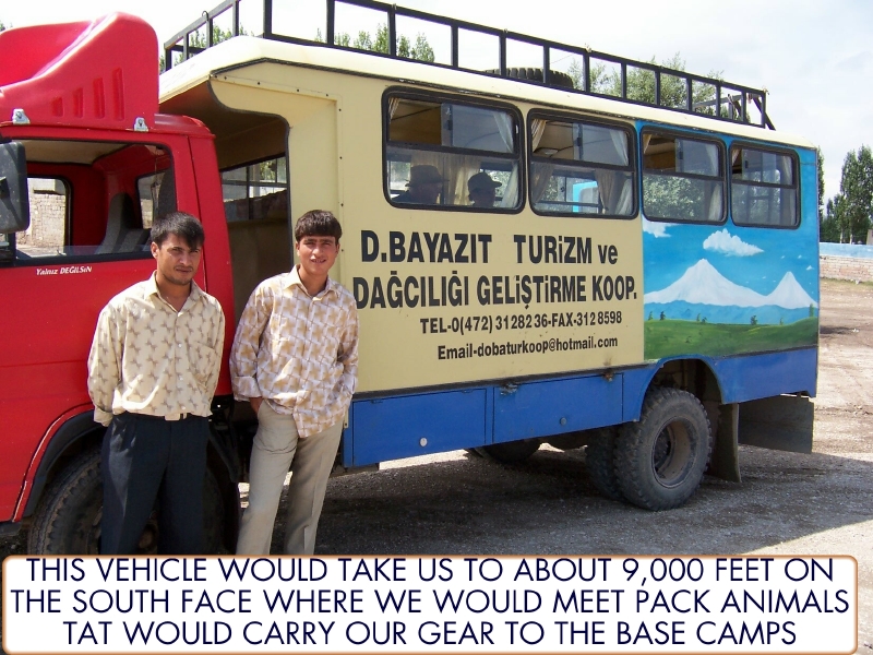 Turkish mountaineers in a truck on the lower part of Ararat. By Matthew Kneisler.