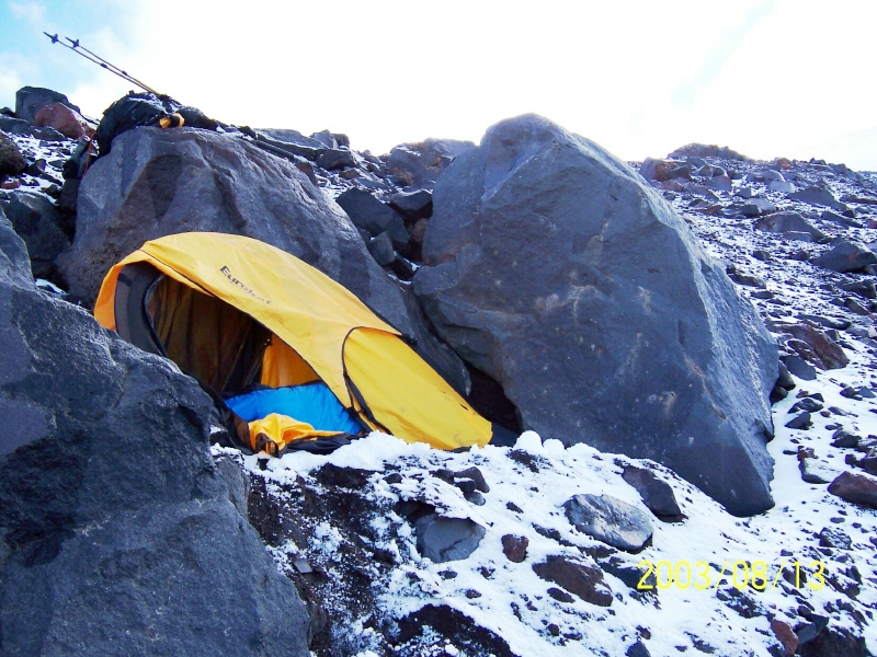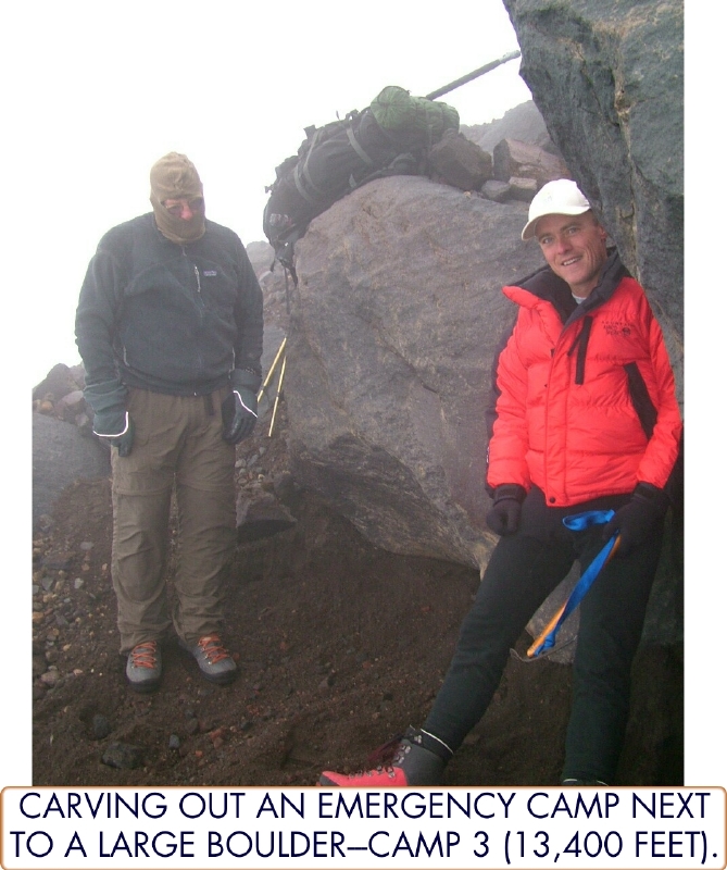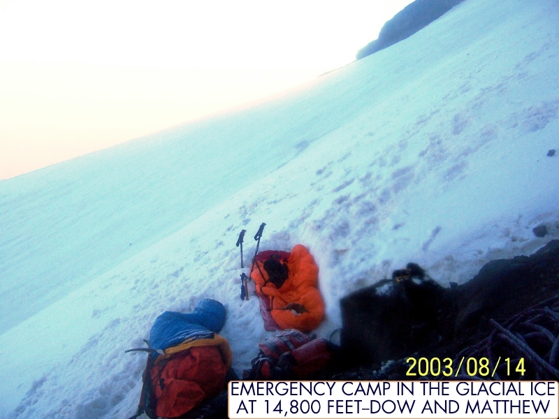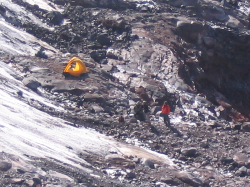 Our emergency Camp 3 at 13,400 feet at dbout 3/4th the way up NM Ridge. By Matthew Kneisler.