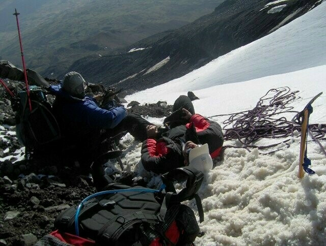 Turkish pess photo showing our survival camp at the bottom of the glacier and near the cliff.