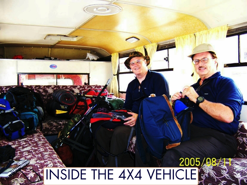 On the way up the south face road of Ararat in Halis's mini bus to meet the horses and other guide. Pictured: Matthew Kneisler and Dow Pursley By John McIntosh.
