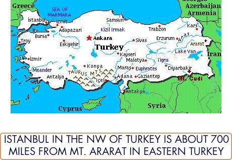 Map showing Dogubayazit and Mt Ararat in Eastern Turkey. By John McIntosh.