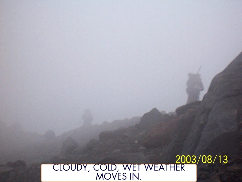 Cold, cloudy, wet weather moves in during the climb. By John McIntosh.