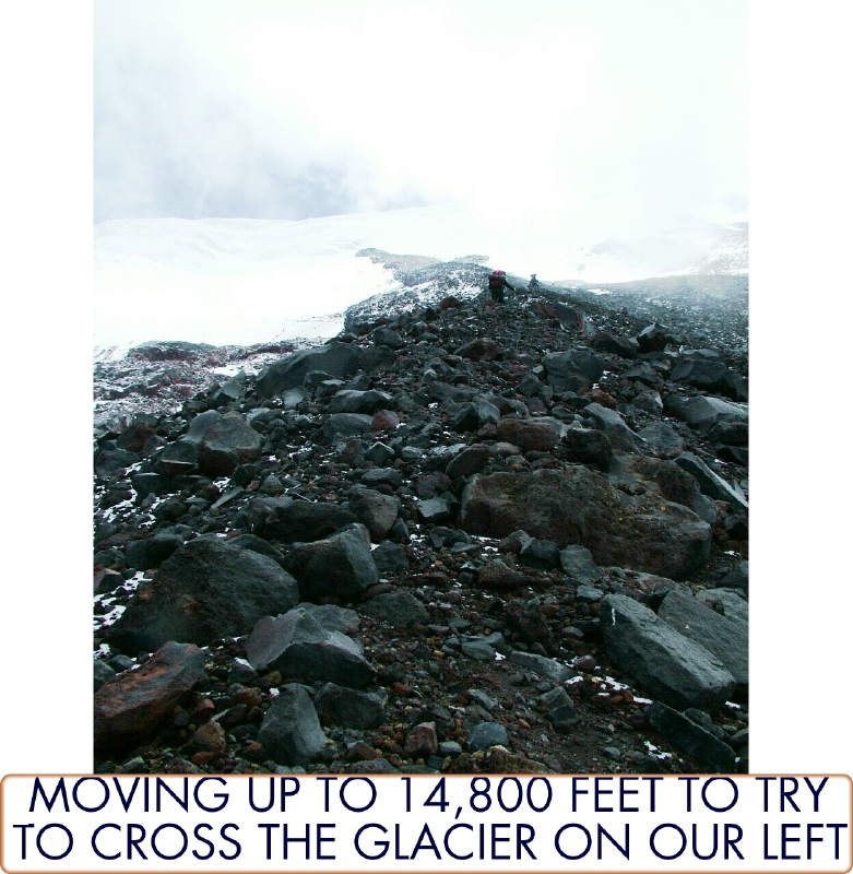 Looking down the glacier at 14,800 feet. By John McIntosh.