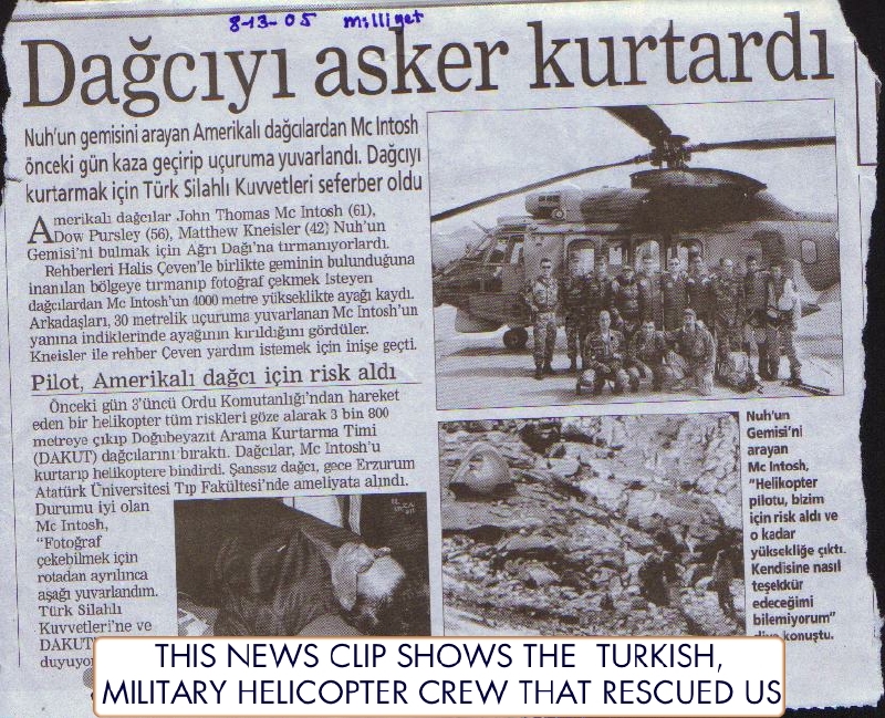 Turkish press photo showing the helicopter landing on the ridge north and about 500 feet above us.